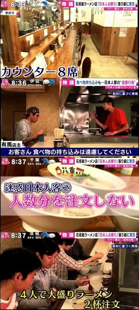 ただ、昔の話です。2019年夏、石垣島のラーメン店「麺屋 八重山style」が、日本人観光客の迷惑行為(1人1杯の注文ルール無視、飲食物持ち込み等)の悪···