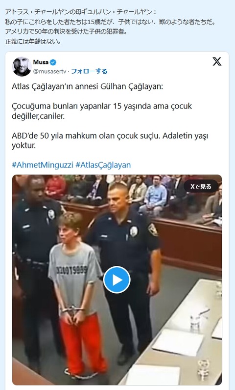 日本も同じようにすべきです。12~15歳でも懲役50年は必要ですね。少年法がオレを守ってくれるとバカは言っていますから、それを無くすべきです。該当···